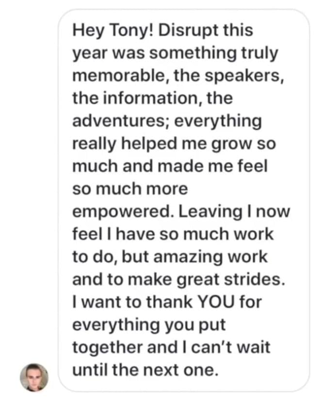 Tony is also the host of the Disrupt Podcast where he interviews the most disruptive entrepreneurs, leaders and change makers in the world.